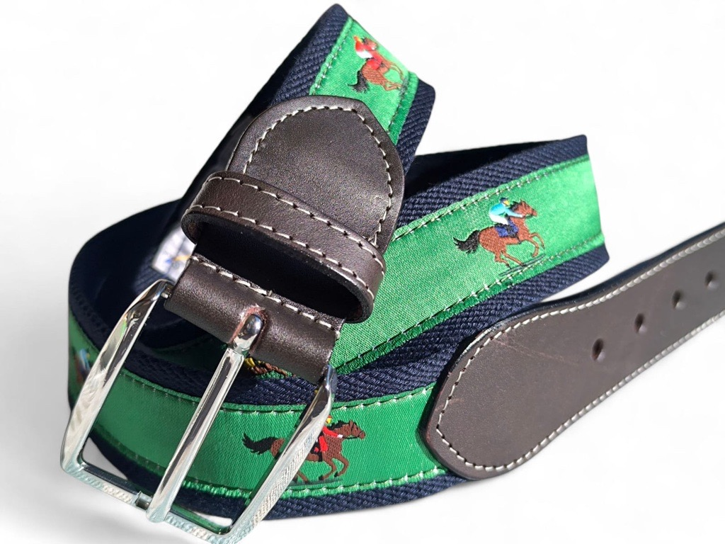 Este cinturón de deportivo de jinetes tipo Jockeys combina estilo y funcionalidad, ideal para los amantes de la Hípica. Confeccionado con cuero de primera calidad y una cinta bordada con motivos ecuestres con jockeys y caballos de diferentes colores. Es el accesorio perfecto para dentro y fuera del hipódromo. Siente el estilo THE CREW. Color borde: MARINO. Ancho de 35 mm