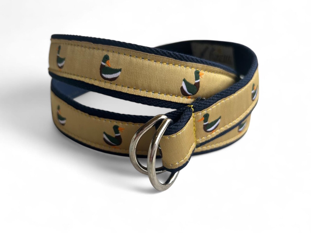 Cinturón exclusivo con bordado de patos. Ideal para amantes de los animales y del mundo de la caza con estilo único. Añade un toque distintivo a tu look. Color: MARINO.