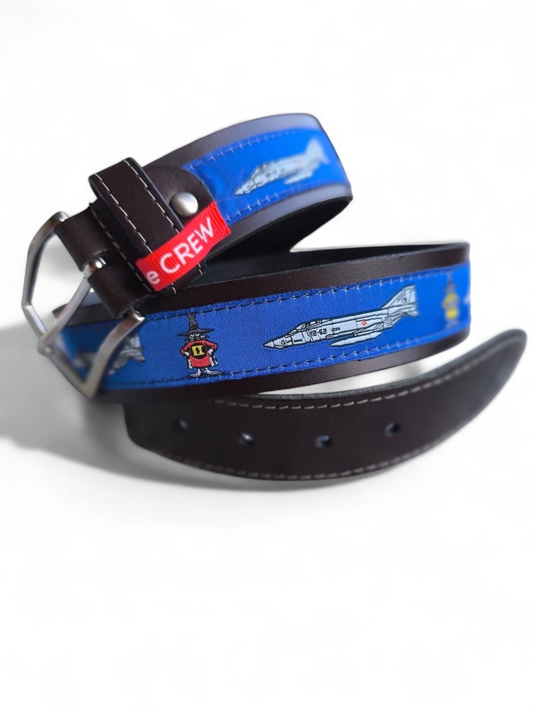 Cinturón exclusivo PHANTOM SPOOKIE con diseño F4 Phantom. Ideal para amantes de la aviación, combina estilo único y materiales de alta calidad para un look distintivo y duradero. Color: MARINO.