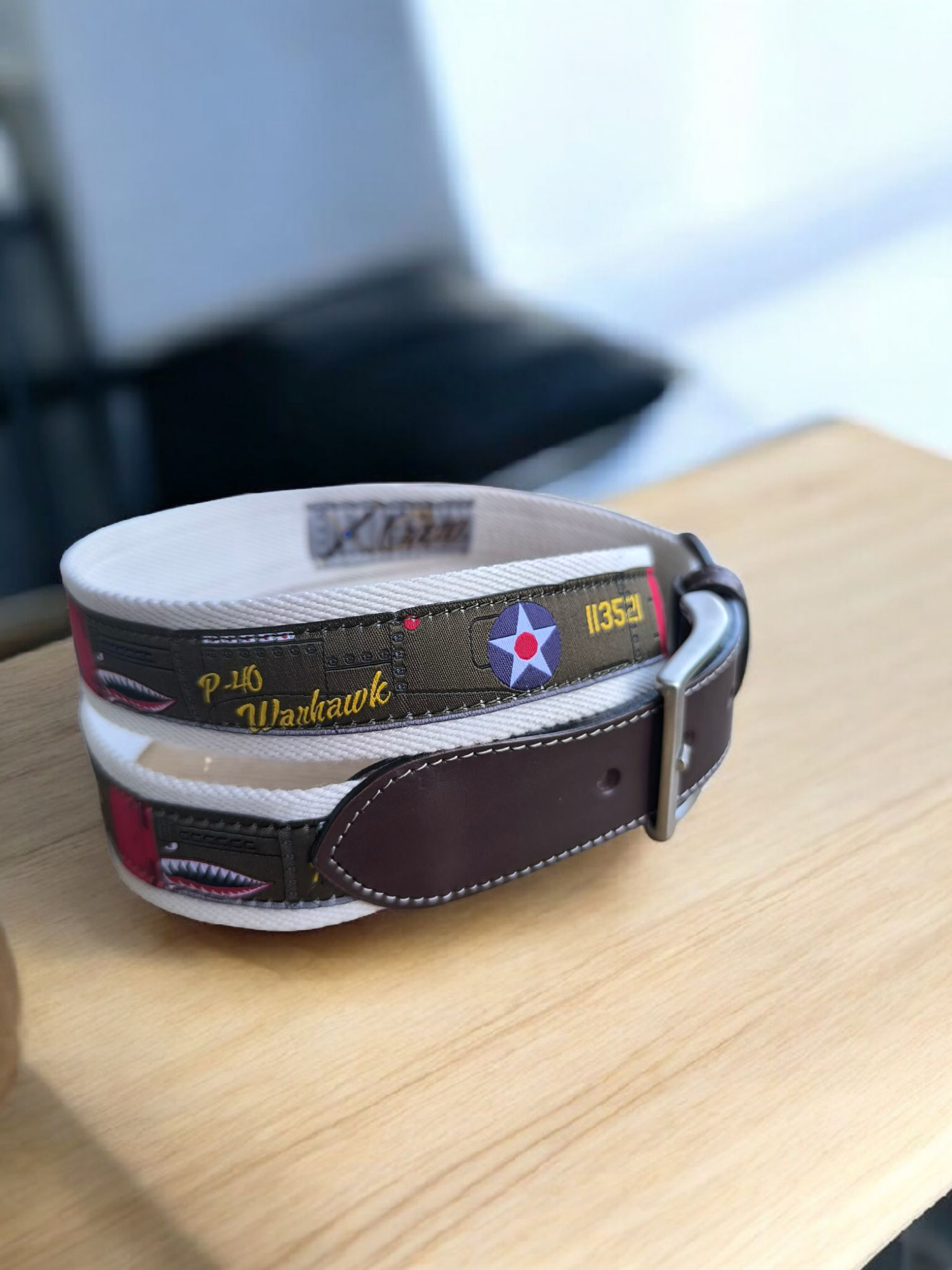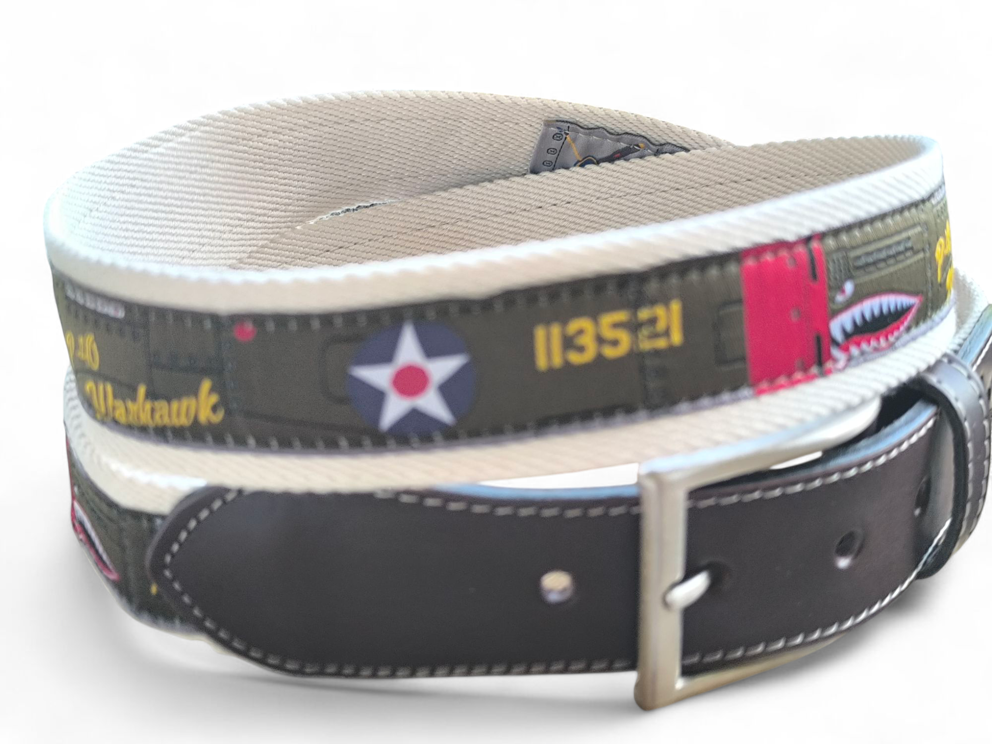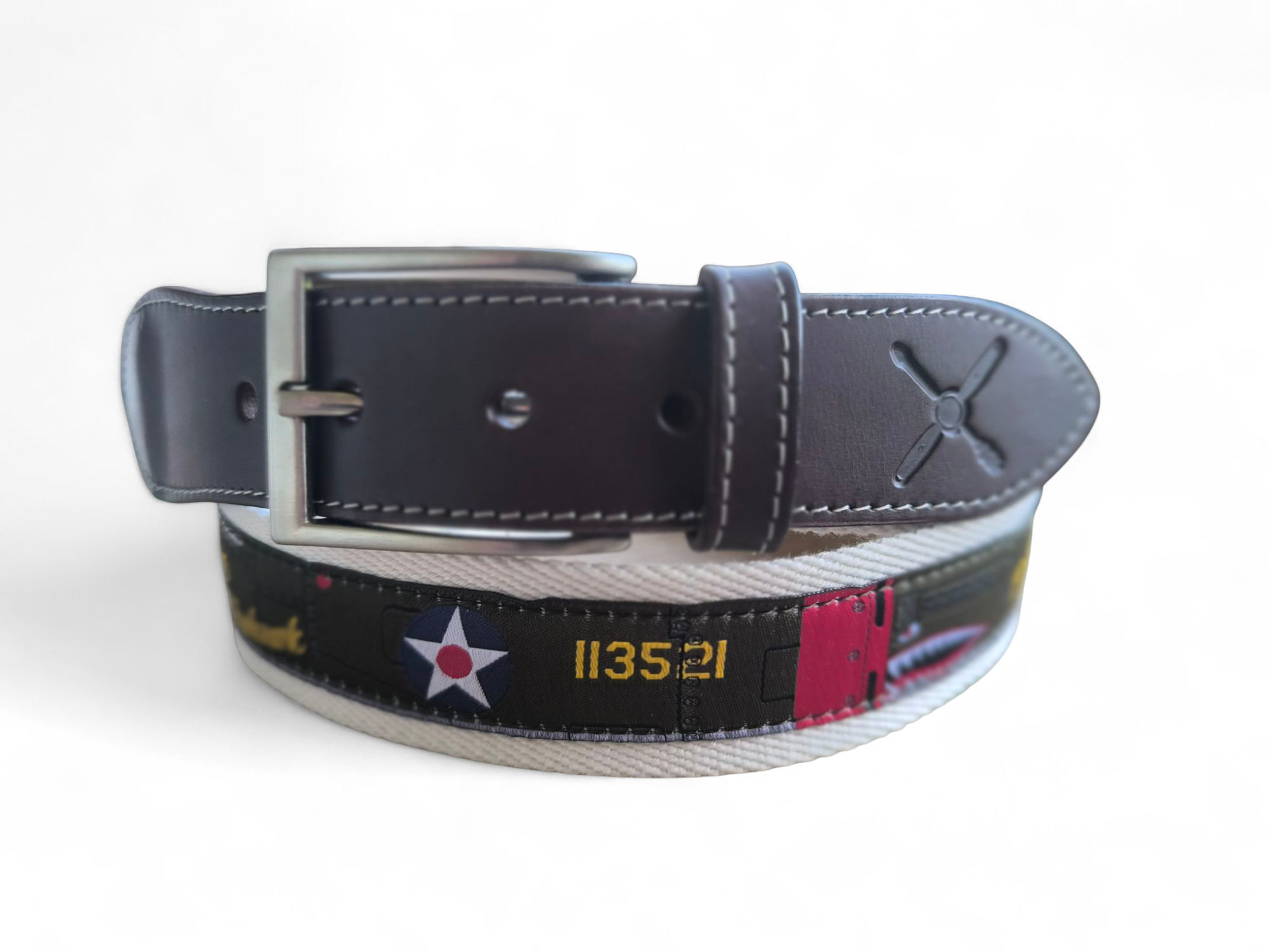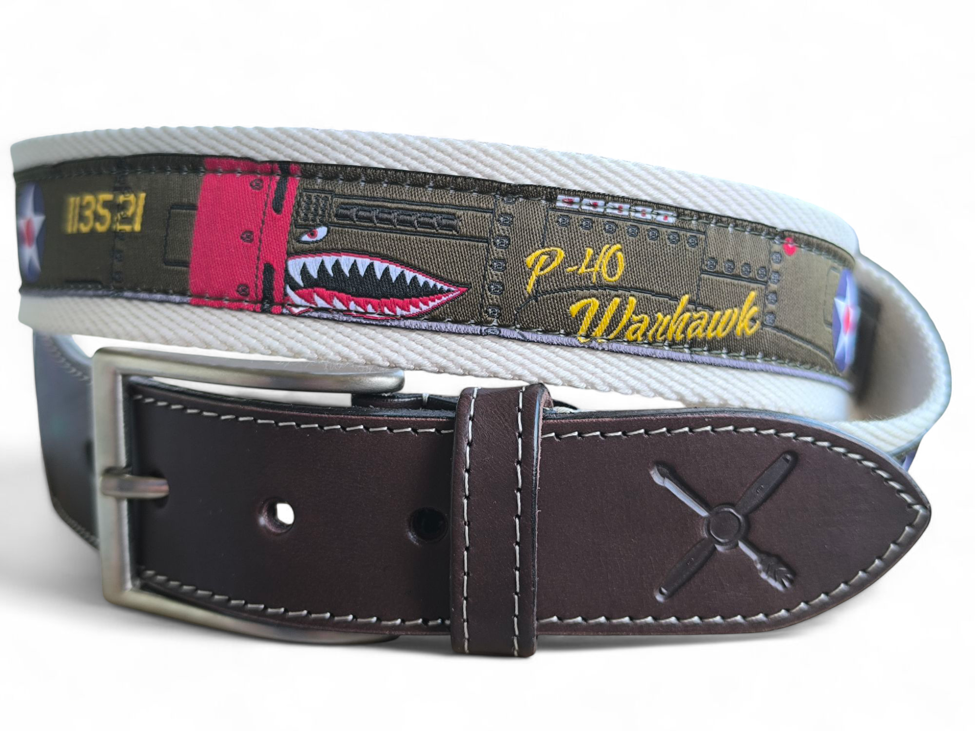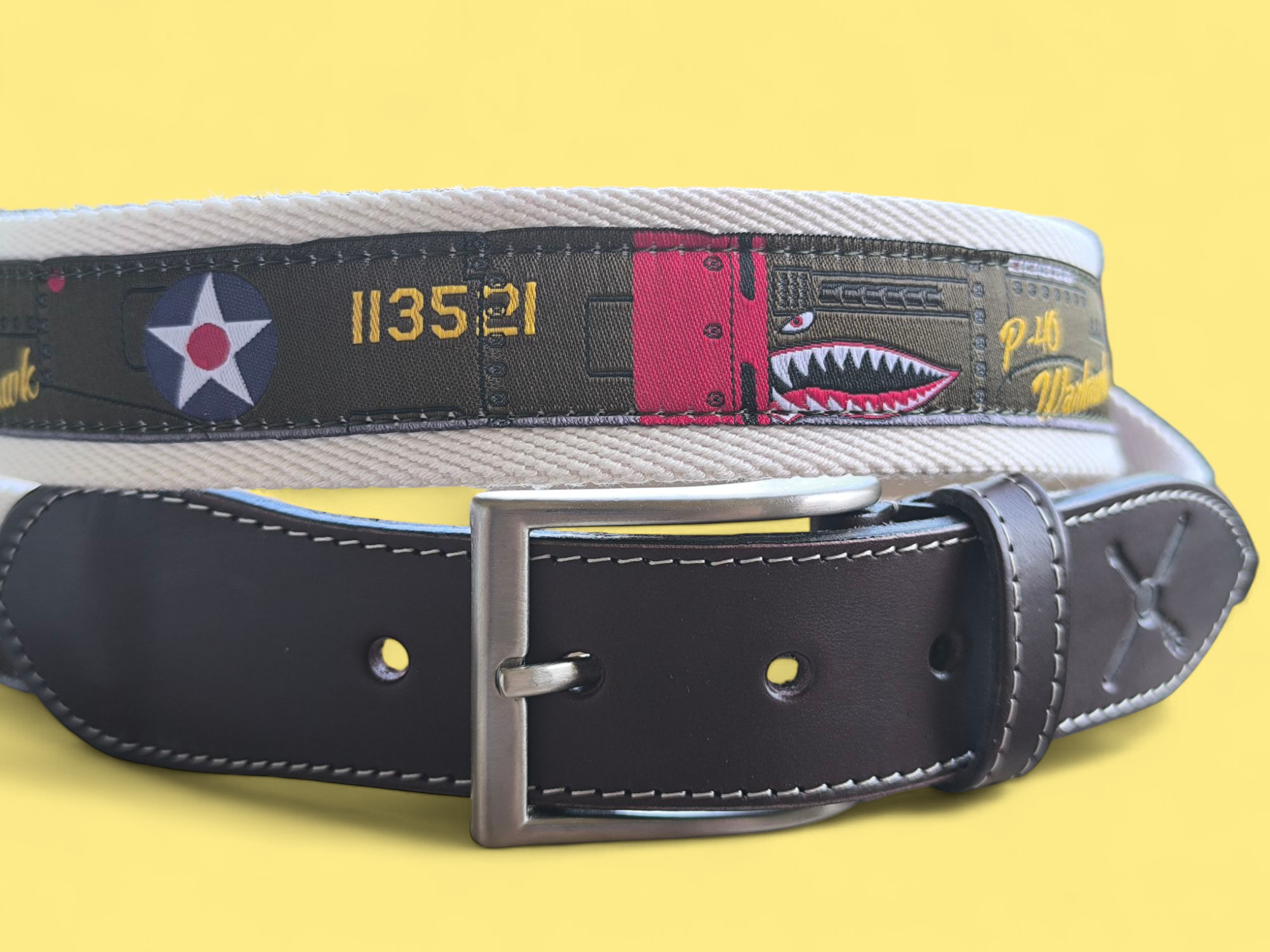 Revive la historia con el cinturón P40 Curtiss, un accesorio único inspirado en la aviación de la 2ª Guerra Mundial. Su diseño bordado y calidad premium lo hacen ideal para amantes de la historia y el estilo vintage. Color: CRUDO.