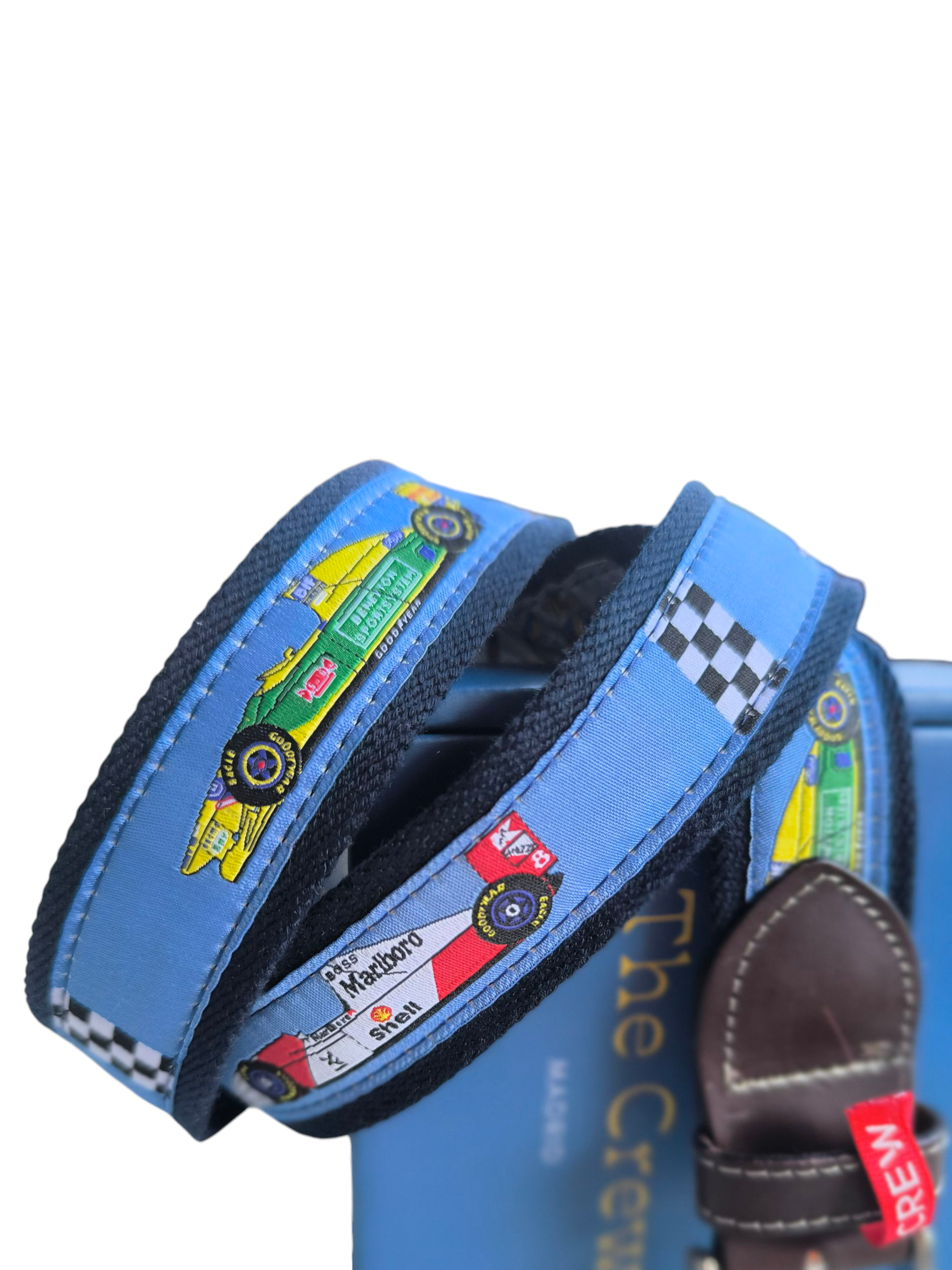 Cinturón deportivo exclusivo THE CREW, con diseño original de los coches más icónicos de la Formula 1 del año 1993. Ideal para amantes del motor y la velocidad. Un accesorio único que combina estilo y pasión. Color: MARINO. Ancho 35 mm.